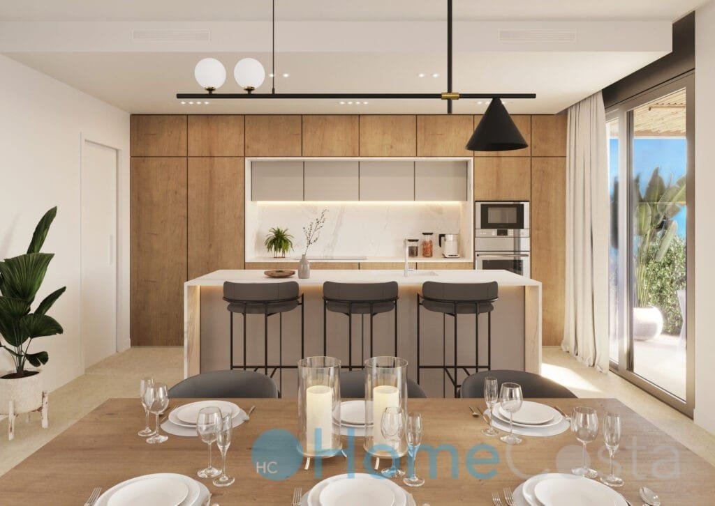 The distribution of these homes is designed to provide comfort in your day to day life, with fully equipped open concept kitchens, including hob, induction hob, oven, extractor hood and sink. Bathrooms also come equipped.